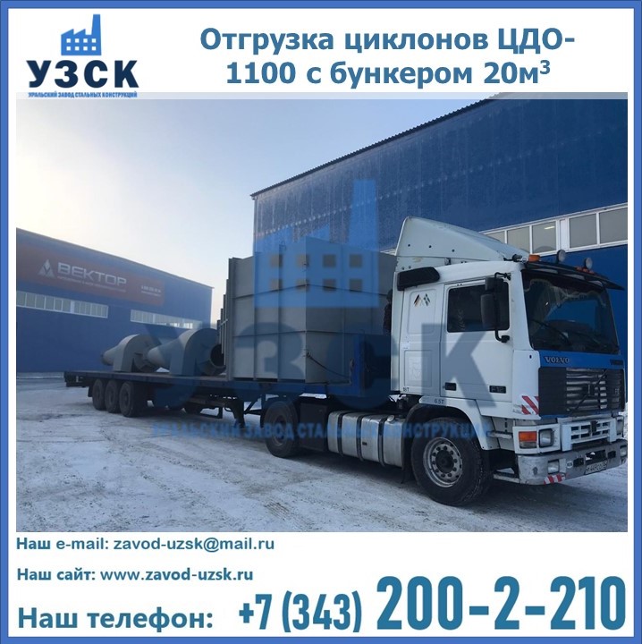 Циклоны ЦДО-1100 с бункером на 20 кубов были отгружены в декабре 2018 года в г. Новосибирск Воронеж.