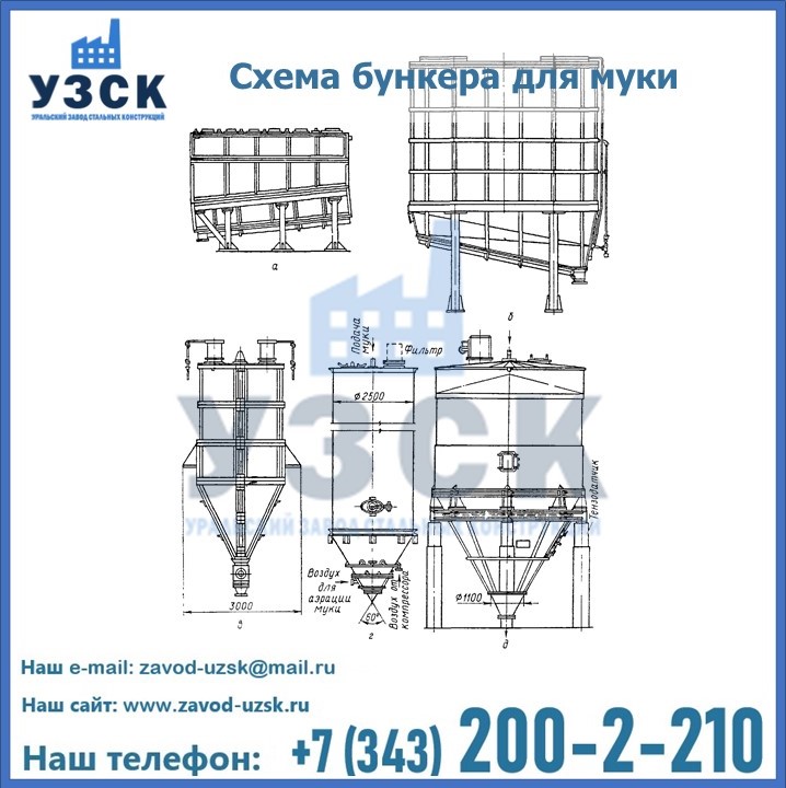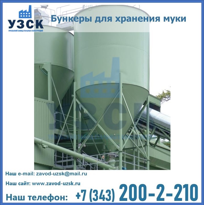 Завод «УЗСК» в Воронеже проектирует, производит и поставляет целевое оборудование, в том числе, бункеры для хранения муки и прочих сыпучих материалов.