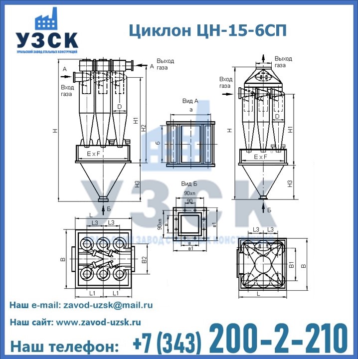 Завод «УЗСК» в Воронеже предлагает большой выбор циклонов ЦН-15-700×6СП и прочих устройств, полностью укомплектованных и готовых к эксплуатации. Мы гарантируем соответствие оборудования всем требованиям ГОСТ и ТУ, износостойкость и высокую производительность предлагаемого оборудования. Уральский Завод Стальных Конструкций изготавливает и продает надежное, эффективное и производительное оборудование, имеющее длительную гарантию и большой эксплуатационный ресурс. Если требуется изготовить циклон нестандартных размеров, то такой вариант выполнения заказа тоже предусмотрен, так как предприятие имеет собственные производственные площади и надежных поставщиков. На все поставляемое или производимое оборудование имеются чертежи и прочая техническая документация. Заказать и купить циклоны или прочее оборудование высокого качества и по доступной цене можно через наш сайт или по указанному в разделе «Контакты» телефону.