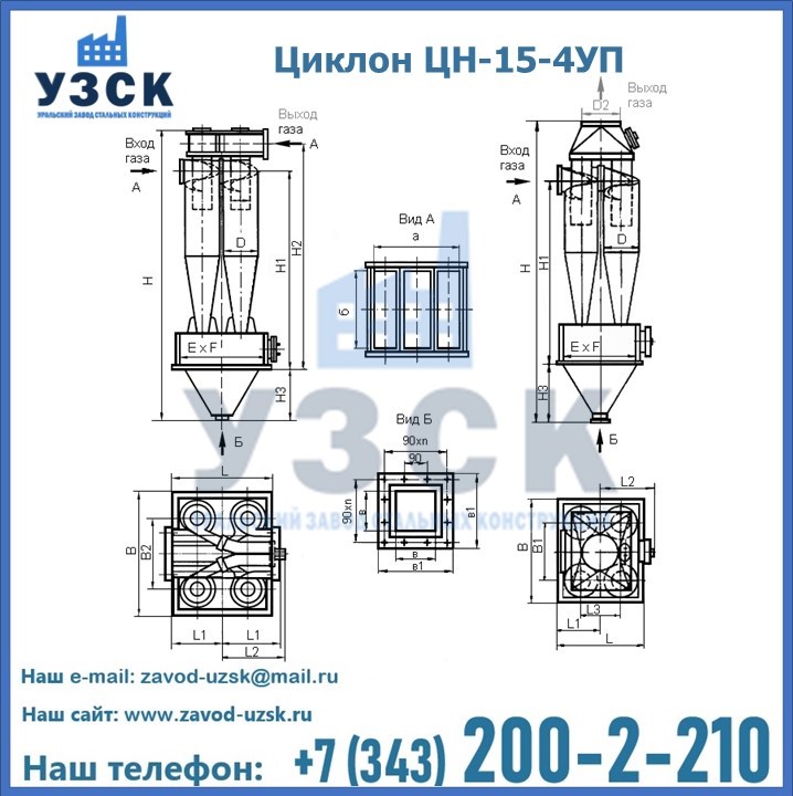 Завод «УЗСК» в Воронеже предлагает большой выбор циклонов ЦН-15-900×4УП и прочих устройств, полностью укомплектованных и готовых к эксплуатации. Мы гарантируем соответствие оборудования всем требованиям ГОСТ и ТУ, износостойкость и высокую производительность предлагаемого оборудования. Уральский Завод Стальных Конструкций изготавливает и продает надежное, эффективное и производительное оборудование, имеющее длительную гарантию и большой эксплуатационный ресурс. Если требуется изготовить циклон нестандартных размеров, то такой вариант выполнения заказа тоже предусмотрен, так как предприятие имеет собственные производственные площади и надежных поставщиков. На все поставляемое или производимое оборудование имеются чертежи и прочая техническая документация. Заказать и купить циклоны или прочее оборудование высокого качества и по доступной цене можно через наш сайт или по указанному в разделе «Контакты» телефону.