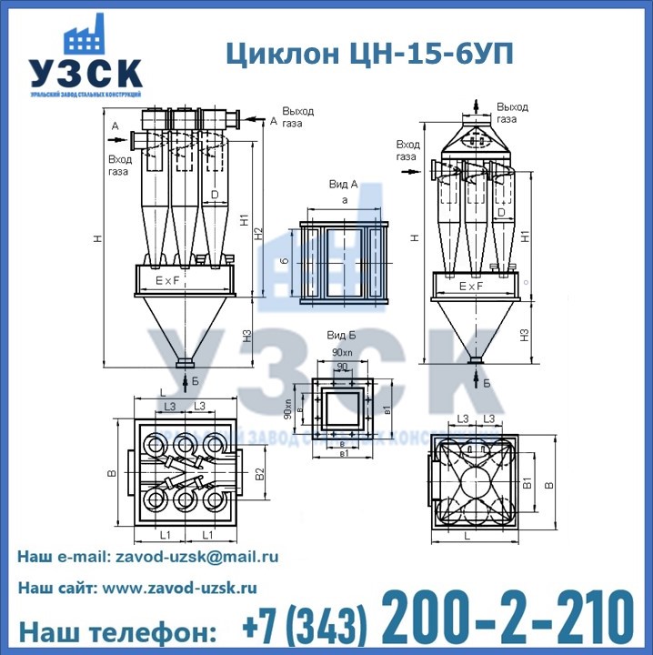 | ЦИКЛОН ЦН-15-900х6УП | 2700 | 2800 | 1624 | 604 | 1580 | 980 | 300 | 440 | 5660 |