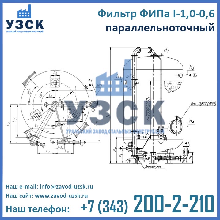 Для того, чтобы купить фильтр ФИПа1 1,0-0,6 в Воронеже выгодно, необходимо обратиться непосредственно к производителю данного оборудования. Ведущий производитель фильтров для смягчения воды – Уральский Завод Стальных Конструкций – предлагает фильтры натрий-катионитные параллельноточные по низким ценам. Оформить заказ на изготовление фильтра ФИПаI 1,0-0,6 Вы можете по электронной почте, указанной в разделе «Контакты» или при помощи формы заказа, расположенной ниже.