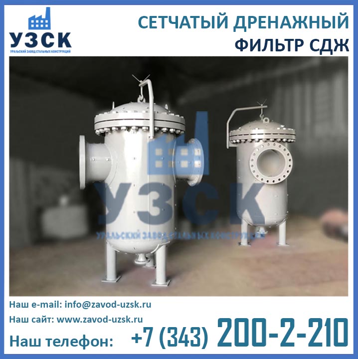 На формирование цены дренажного фильтра влияют следующие факторы: материальное исполнение, конструктивное исполнение, стоимость сырья в момент изготовления, комплектация, необходимость доставки в другой населенный пункт, срочность выполнения работ по изготовлению, прочие предпочтения заказчика. Уральский завод стальных конструкций изготавливает фильтры СДЖ-700 любого типового исполнения, а также нестандартные фильтры СДЖ 700 мм по чертежам заказчика или техническому заданию. Дополнительно к фильтрам СДЖ у нас Вы можете заказать сменные фильтрующие элементы любой тонкости фильтрации, ответные фланцы, прокладки и крепеж. По запросу изготавливаем также фильтры СДЖ-К-700 с концевым затвором. Для того чтобы узнать какова цена на фильтр СДЖ Ду700 в Воронеже с необходимыми Вам характеристиками, отправьте запрос в отдел продаж завода УЗСК по координатам, указанным в разделе «Контакты».