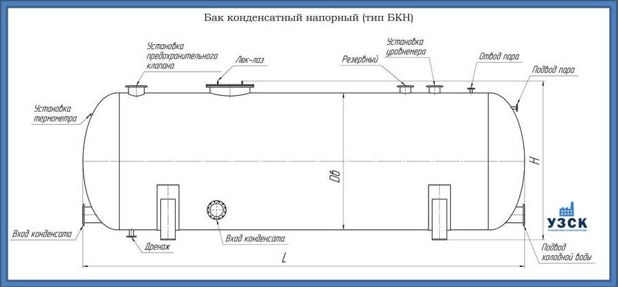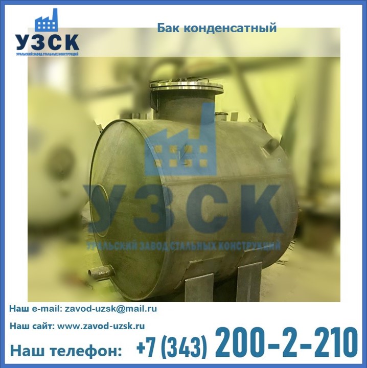 Многие заказчики стараются конденсатные баки купить по выгодной цене в компании «УЗСК» в Воронеже. Причин несколько. Производитель поставляет емкости с полным комплектом лестниц, площадок обслуживания. Бак после гидравлических испытаний покрывают специальной внутренней и наружной краской, накладывают теплоизоляцию или наваривают крепеж для навески минматов. Условия теплоизоляции согласуются с заказчиком.