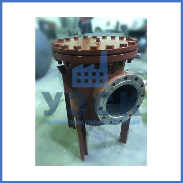 Конструктивно магнитный шламотводитель является цилиндрической емкостью, у которой предусмотрены днища в форме эллипса. Верхняя часть корпуса изготовлена в виде крышки, на которой имеются фланцевые разъемы. Жидкость входит и выходит через патрубки, имеющие фланцевые соединения.